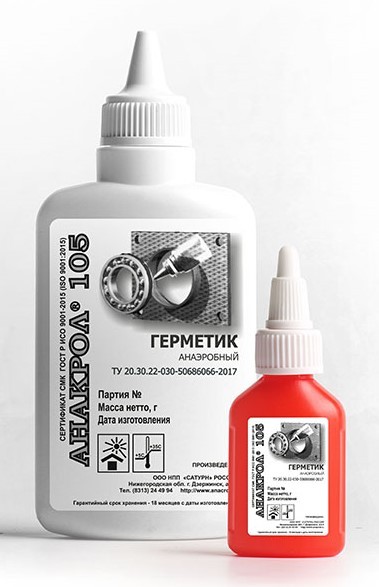 АНАКРОЛ-105 отверждается в термореактивный полимер в небольшом зазоре между сопрягаемыми металлическими поверхностями - в резьбовой паре и вал-втулочных соединениях. Клеевое соединение на герметике АНАКРОЛ-105 имеет химическую и термическую устойчивость к нефтепродуктам, газам, растворам кислот и щелочей.